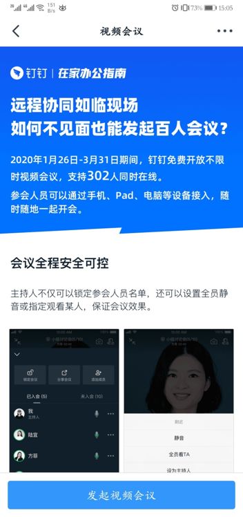 對比微信、QQ自帶的視頻通話功能,釘釘最明顯的優(yōu)勢是高達(dá)302人的參會(huì)人數(shù),疫情期間免費(fèi)開放使用,開會(huì)人數(shù)上已經(jīng)輕松吊打微信QQ,完全能滿足大型企業(yè)的百人視頻會(huì)議需求,并且支持視頻會(huì)議主持人功能,可以實(shí)現(xiàn)進(jìn)行簡單的會(huì)議管理。