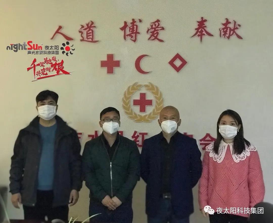 夜太陽集團(tuán)代表毛洪根、王林瑜與吉水縣紅十字會工作人員合影留念