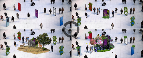 亮點四:互動風(fēng)景畫,大屏中顯示森林場景,當(dāng)有參觀者從屏幕前走過時, 屏幕中對應(yīng)位置的特色元素會產(chǎn)生一些特效,如花朵綻開,蝴蝶飛走等特效;