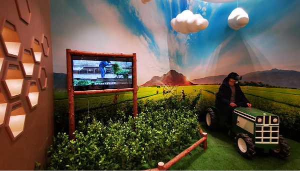 ⑤VR農(nóng)場——通過仿真花草道具搭建了一個(gè)農(nóng)場場景,同時(shí)還放了一臺(tái)拖拉 機(jī)仿真模型,模型上搭載了一套VR裝備,顧客可以坐在拖拉機(jī)上,戴上VR眼鏡,體驗(yàn)安利紐崔萊農(nóng)場風(fēng)光,更加真實(shí)的認(rèn)識(shí)安利產(chǎn)品制作工藝流程;