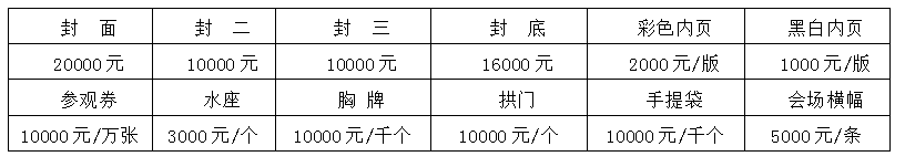 注:標(biāo)準(zhǔn)展位配備:中英文楣板(高度25cm)、日光燈兩盞、隔板(高度250cm,可用高度246cm)、洽談桌一張、椅子兩把、可容300W/220V電源插座一個;使用光地的展商自行負(fù)責(zé)展位布置的所需費用(詳見參展商手冊)。 2.其他廣告: (未備注廣告形式及報價請聯(lián)系:025-86891508)