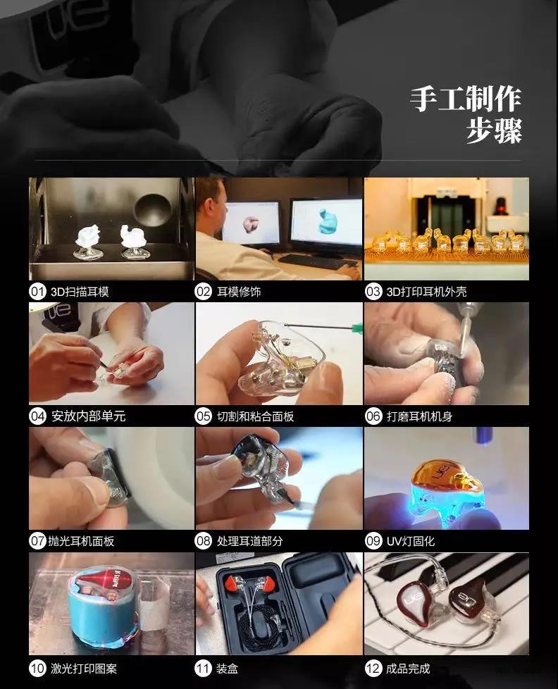 每一副UE耳機(jī)都是由技術(shù)人員純手工制作,而且每一副UE定制耳機(jī)都是根據(jù)使用者的耳道輪廓而做出完美貼合耳朵的耳機(jī)。