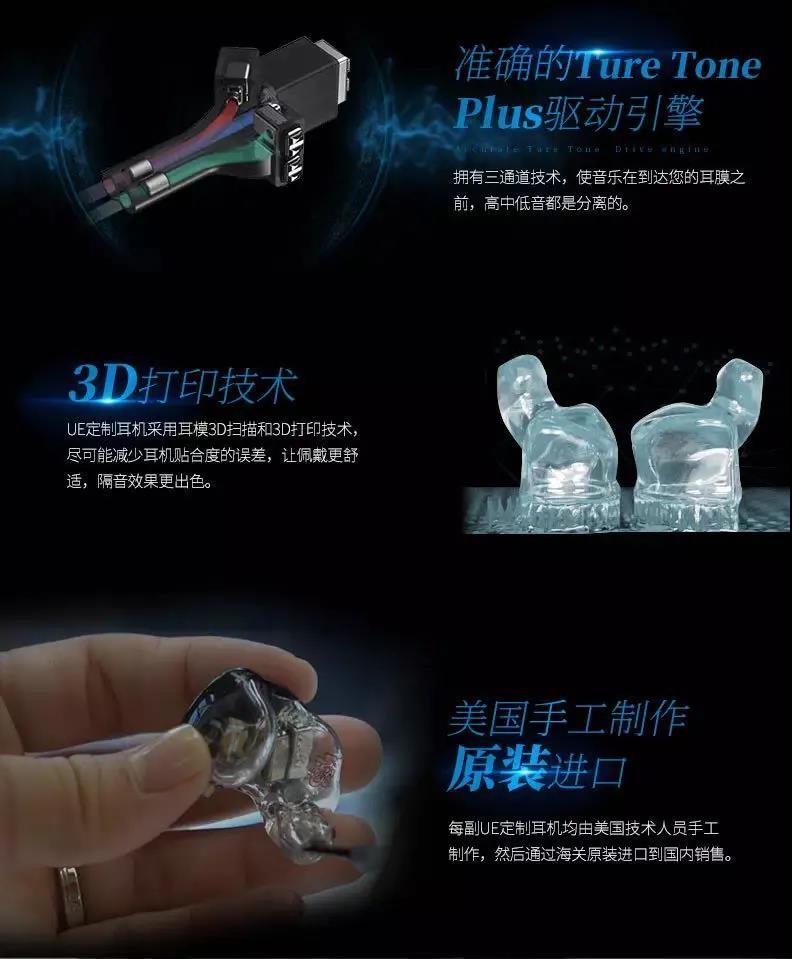 UE定制耳機(jī)采用耳模3D掃描和3D打印技術(shù),盡可能減少耳機(jī)貼合度的誤差,讓佩戴者更舒適,隔音更出色。