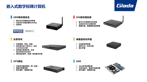 杰和科技專注數(shù)字標牌媒體播放器研發(fā)生產(chǎn)20余年,目前已擁有品類齊全、性能豐富的系列媒體播放器整機及主板產(chǎn)品,其中包括ARM媒體播放盒、X86媒體播放器、多屏拼接控制電腦、客戶機、OPS模組和SDM系列等。