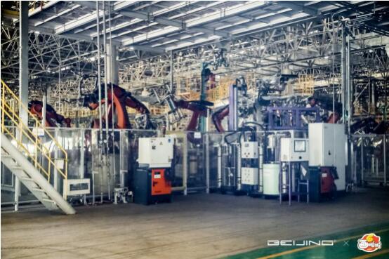 (焊裝車(chē)間里全自動(dòng)的機(jī)器手臂,彰顯BEIJING智造實(shí)力)