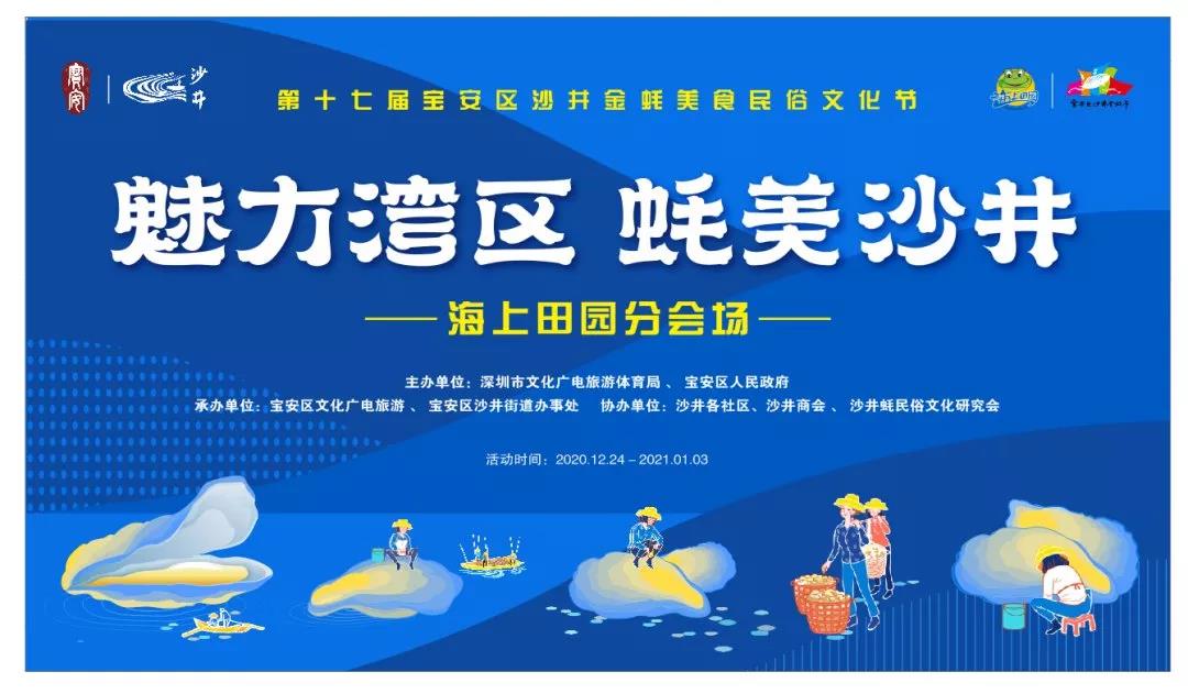 從2020年12月27日起持續(xù)至2021年1月3日,以“沙井蠔”為媒介,以“魅力灣區(qū) 、蠔美沙井”為主題,連續(xù)8天分別舉辦蠔鄉(xiāng)湖公園主會場及開幕式系列、沙井古墟系列、購物嘉年華系列、群眾性文化系列等四大系列28項主題活動,包括蠔鄉(xiāng)湖“重新發(fā)電”電廠新生城市主題展覽、沙井風(fēng)味美食展、沙井優(yōu)品展示、寶安民俗文化節(jié)之“非遺”活動展演、首屆沙井蠔鄉(xiāng)湖音樂節(jié)、蠔鄉(xiāng)湖草坪星空露天劇場、金蠔節(jié)光影燈光秀等。
