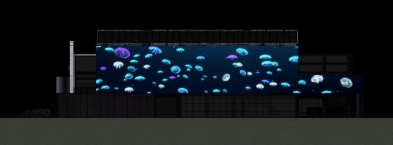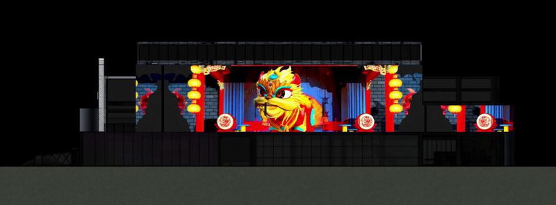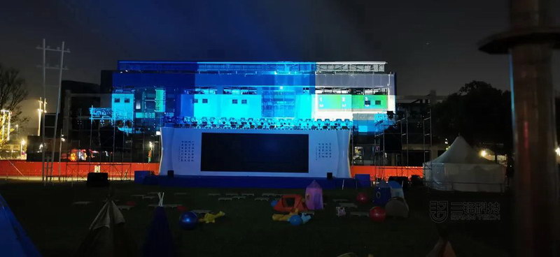 31000流明高清工程投影機(jī)將表演舞臺背后的墻面作為展示屏。45米X10米的超大尺寸展示,運(yùn)用不一樣的藝術(shù)動態(tài)展示,產(chǎn)生了超乎想象的震撼效果,是充滿想象力的影像與建筑物搭配的完美結(jié)合。