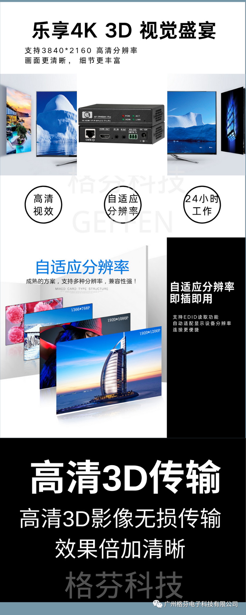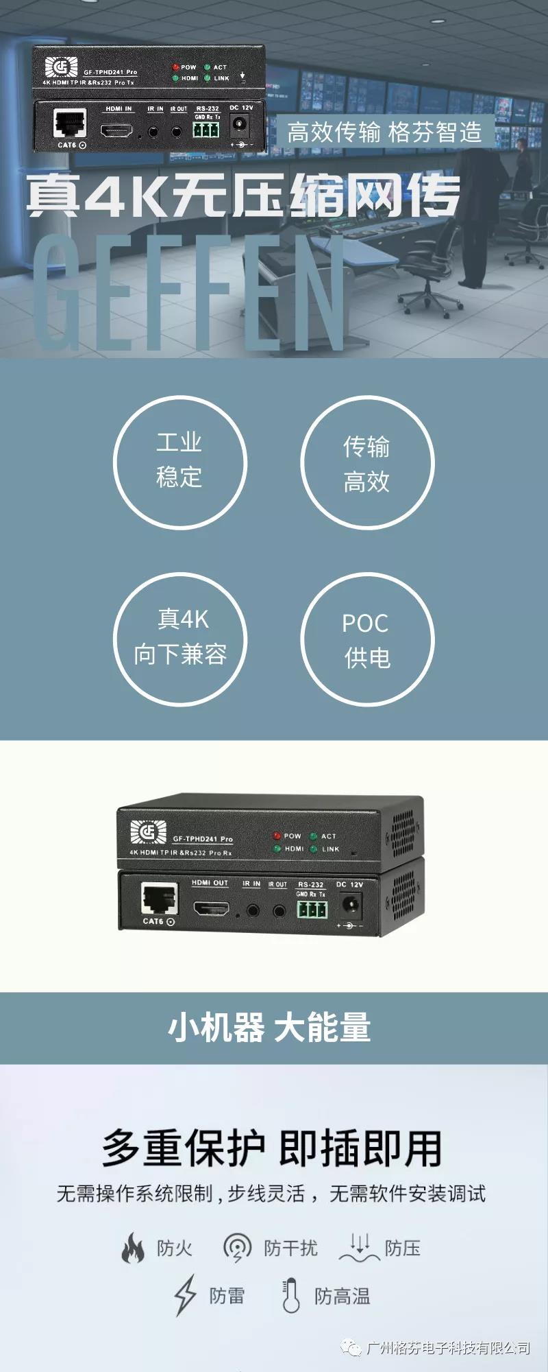 格芬電子科技有限公司始終站在數(shù)字視頻和HDTV發(fā)展的最前沿,最直接地面對(duì)市場(chǎng),為HDTV分配、延長(zhǎng)和轉(zhuǎn)換提供解決方案,最大地優(yōu)化數(shù)字視頻資源。