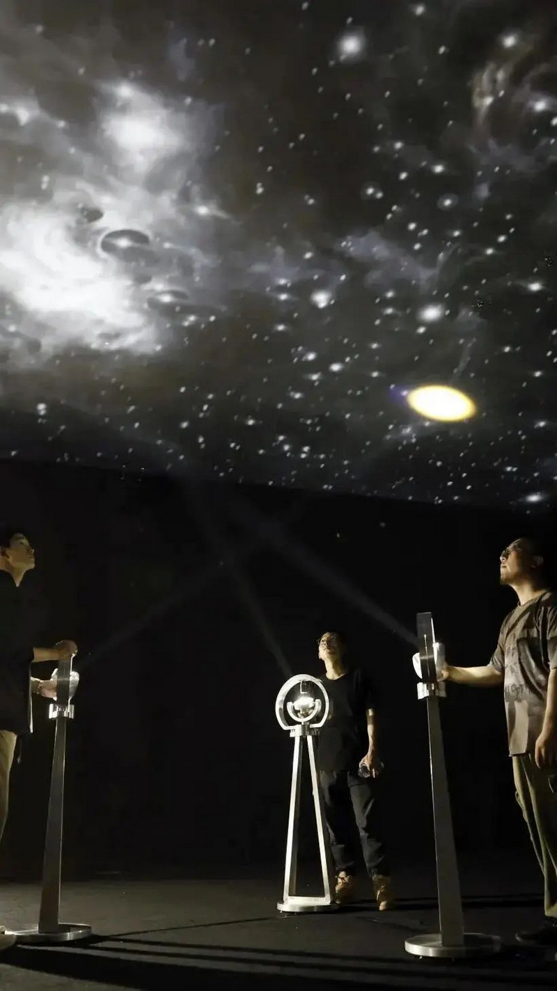 觀者通過(guò)操縱光控互動(dòng)形式,搜尋暗藏于空間(宇宙星云)中的聲音,光點(diǎn)所尋之處將呈現(xiàn)由著名戲劇演創(chuàng)人員錄制的經(jīng)典戲劇獨(dú)白。將時(shí)間與空間、經(jīng)典與當(dāng)下、公眾與演創(chuàng)人員置于同一維度:現(xiàn)實(shí)生活的戲劇時(shí)空,是謂剎那即永恒。
