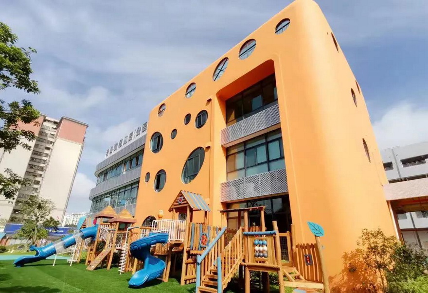 江門(mén)新會(huì)實(shí)驗(yàn)幼兒園(分園)是當(dāng)?shù)匾凰k幼兒園,共開(kāi)設(shè)15個(gè)班,新增500多個(gè)學(xué)位,由新會(huì)實(shí)驗(yàn)幼兒園實(shí)行全面管理。幼兒園的整體建筑設(shè)計(jì)采用簡(jiǎn)約的線條,活潑的色彩造型,充滿活躍感和童趣。園區(qū)按功能分為教學(xué)區(qū)和運(yùn)動(dòng)區(qū),教學(xué)區(qū)的每個(gè)課室均配活動(dòng)室、寢室、衛(wèi)生間和衣帽間,并另外配套圖書(shū)閱覽室、角色體驗(yàn)室、音樂(lè)室等多個(gè)功能場(chǎng)室;運(yùn)動(dòng)區(qū)主要包括室外分班活動(dòng)中心、大操場(chǎng)、西南端沙水池區(qū)域等室外活動(dòng)設(shè)施,同時(shí)利用邊角空間,在教學(xué)樓周邊設(shè)置體能訓(xùn)練區(qū)、植物園區(qū)等。
