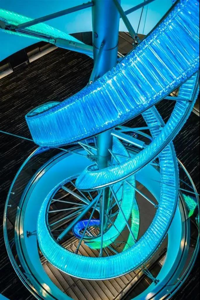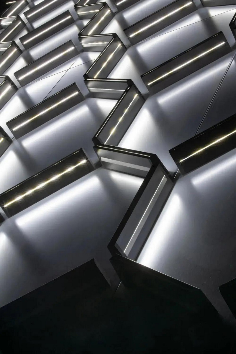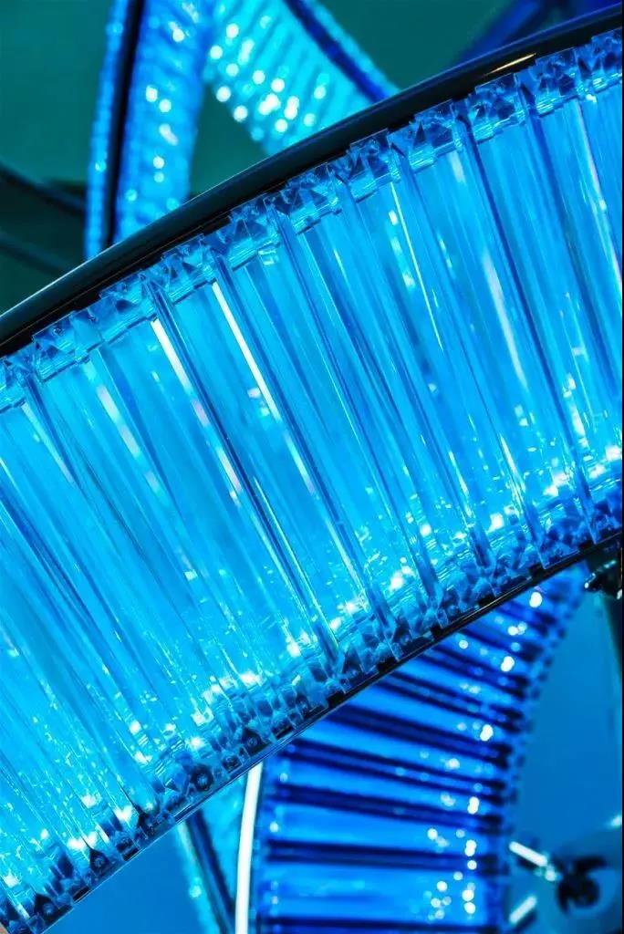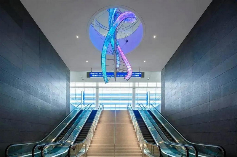 投資17.3億美元的洛杉磯國(guó)際機(jī)場(chǎng)(LAX)西登機(jī)口投入運(yùn)營(yíng),來(lái)自捷克的水晶品牌 Preciosa Lighting為此訂做了一個(gè)照明裝置《Crystal Swell》——一條65米長(zhǎng)的“水晶絲帶”,該作品由 Preciosa Lighting 與 Corgan 建筑公司合作完成,作品以“Ocean Swell”(海洋涌浪)為設(shè)計(jì)理念,讓人聯(lián)想到唯美的海浪曲線。