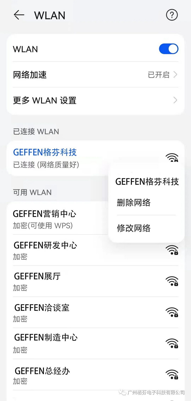 2、長(zhǎng)按已經(jīng)鏈接上的路由器的WIFI名稱。(重要:路由器必須是最后連接中控使用的路由器。)