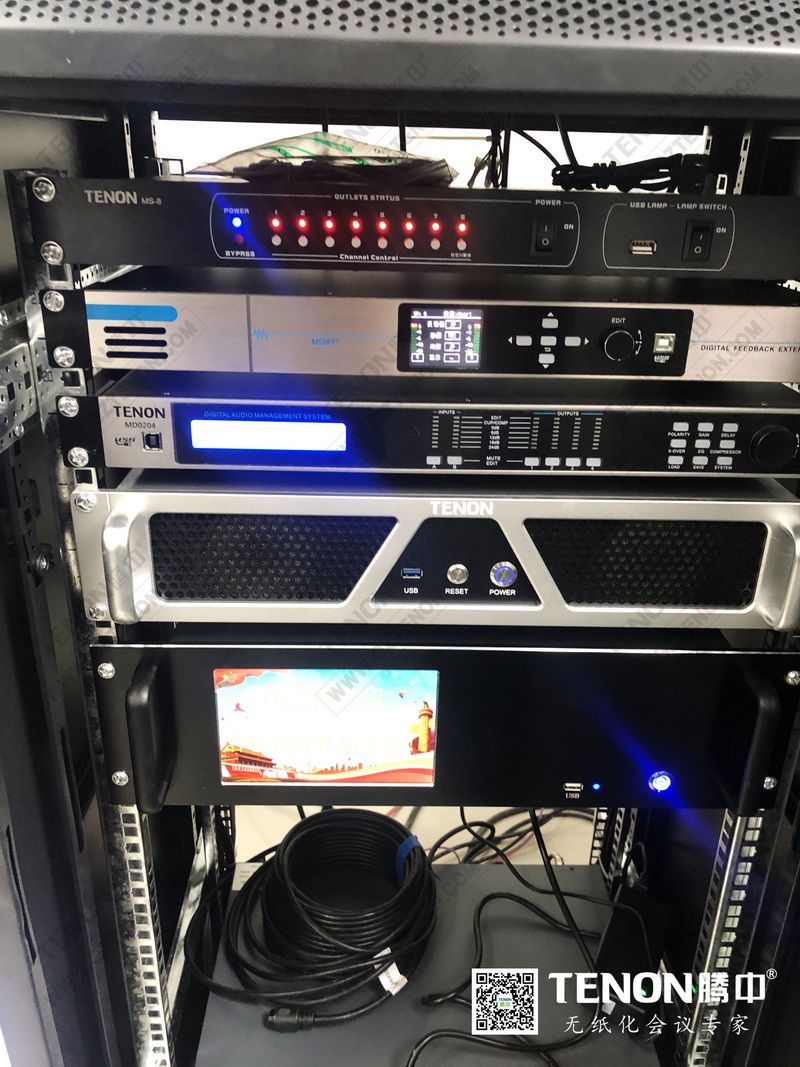 此次騰中為渝北區(qū)某會議室設(shè)計的方案有無紙化會議系統(tǒng)、手拉手會議系統(tǒng)、擴(kuò)聲系統(tǒng)等。無紙化會議終端主要由騰中無紙化升降升降一體機(jī),再配備手拉手會議話筒和音響,參會者在會議中可快速發(fā)言,極大地提高了會議效率。無紙化終端軟件,滿足會前、會中和會后管理,支持文字資料以電子版的形式進(jìn)行共享、交互批注和交流。以響應(yīng)國家積極倡導(dǎo)的"節(jié)約用紙、綠色低碳"的紙張消費(fèi)觀。此次會議室的升級,極大的降低了大量人力及時間,為降低財政成本盡一份力,也大大提高了會議的效果與效率。