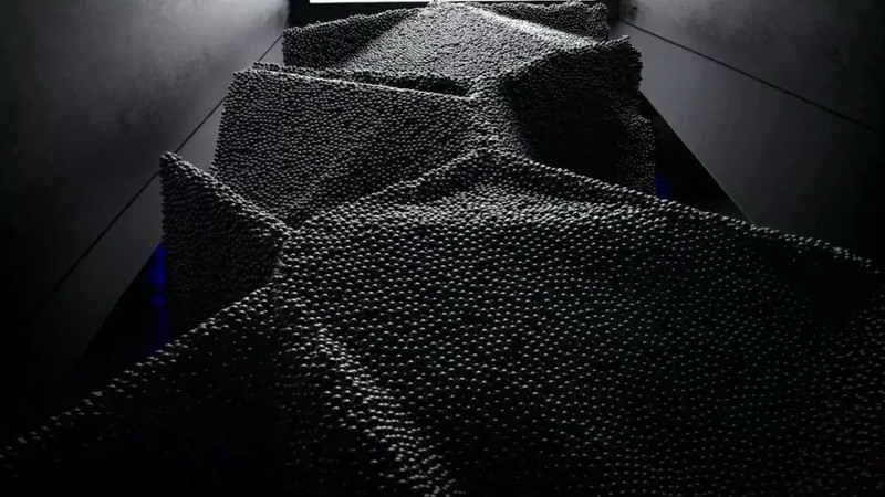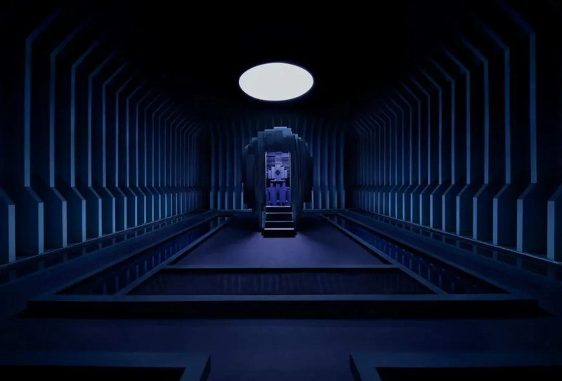 玻璃制成的裝置的地板、墻壁和天花板有機(jī)浮雕和散布著的骨頭似的圖案對(duì)稱性和和諧性在這里完美呈現(xiàn)并反映著圣所的圣潔