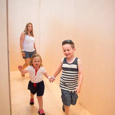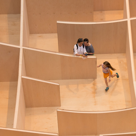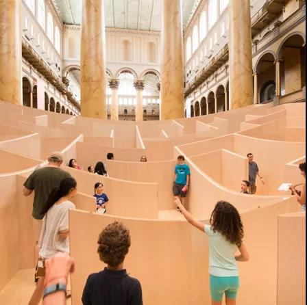 博物館與BIG-Bjarke Ingels集團(tuán)合作為博物館的歷史悠久的禮堂打造了一個(gè)前所未有的大型迷宮。這座楓木夾板結(jié)構(gòu)高約5.49米,面積為18.29米×18.29米,迷宮擁有一系列曲折的結(jié)構(gòu),供游客穿行和探索。