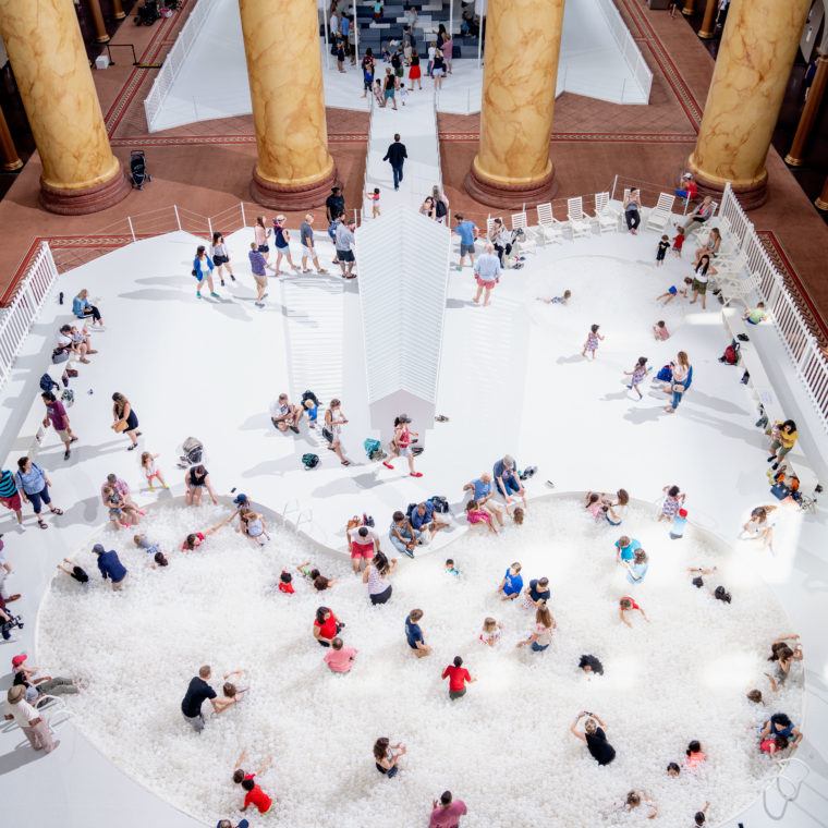 由Snarkitecture設(shè)計(jì)的趣樂屋是博物館在其歷史悠久的禮堂內(nèi)的臨時(shí)裝置中的最新的一個(gè)充滿想象力的夏季積木派對(duì)系列。