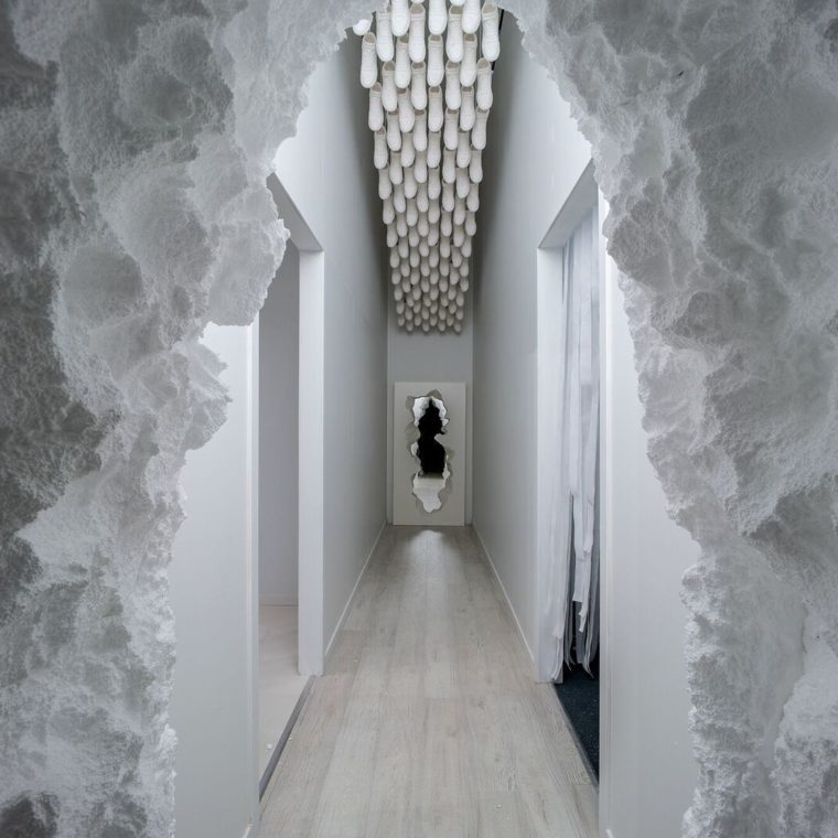 趣樂屋是Snarkitecture的第一個(gè)綜合博物館展覽,包含了工作室在整個(gè)大廳中的多種活動(dòng)。由意大利的Maria Cristina Didero策展,展覽的核心是在Snarkitecture設(shè)計(jì)的房子里呈現(xiàn)出一個(gè)獨(dú)立的結(jié)構(gòu),讓人想起傳統(tǒng)的屋子的概念。