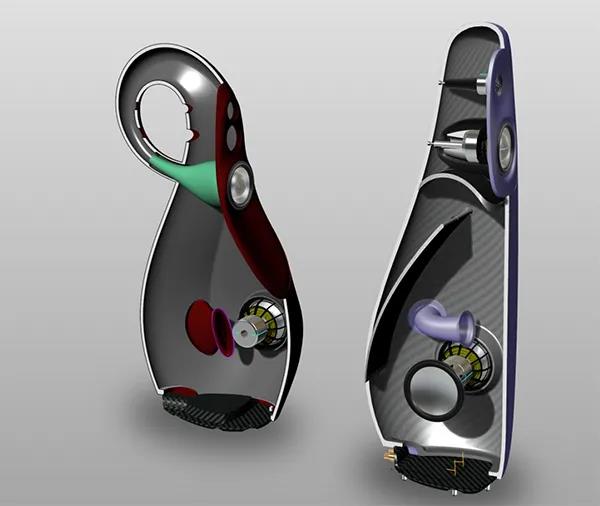 單元的秘密不只有TTL技術(shù)消除背波。所有Vivid音箱上的單元,都是他們家自己開(kāi)發(fā)的。VIVID audio音箱的高音單元振膜也是自己設(shè)計(jì)的,他們?cè)诟咭魡卧蟽?yōu)先處理盆分裂的問(wèn)題。所有的凸盆高音都面臨了盆分裂失真的問(wèn)題。總工程師Laurence用兩個(gè)方法來(lái)提高盆分裂發(fā)聲的頻率。第一,他在高音振膜邊緣加裝一個(gè)碳纖維環(huán),藉以強(qiáng)化高音振膜的運(yùn)動(dòng)剛性;第二,他們透過(guò)有限元素分析(finite element analysis, FEA)發(fā)現(xiàn),如果他們將高音振膜的球面弧度做成電力線自然垂下的弧度,或是蜘蛛網(wǎng)下垂的弧度,就能將盆分裂發(fā)聲的頻率再提高一個(gè)八度。因此,Vivid音箱的高音振膜設(shè)計(jì)稱(chēng)為Catenary Dome Profile(CDP)。