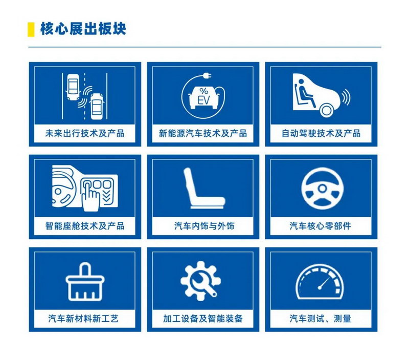 未來(lái)出行、新能源汽車、汽車內(nèi)外飾、汽車輕量化、自動(dòng)駕駛、智能座艙、核心零部件、汽車新材料、新技術(shù)等全產(chǎn)業(yè)鏈,全方位立體呈現(xiàn)電動(dòng)化、自動(dòng)駕駛、軟件定義汽車等全球汽車行業(yè)趨勢(shì)。