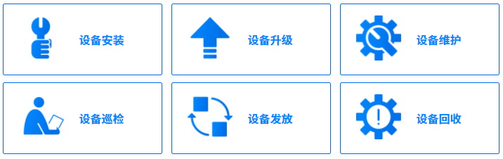 設(shè)備安裝、設(shè)備升級(jí)、設(shè)備維護(hù)、設(shè)備巡檢、設(shè)備發(fā)放、設(shè)備回收。