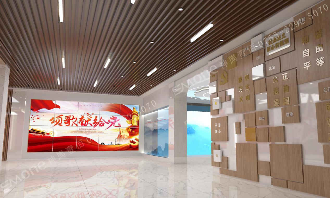 通過(guò)互動(dòng)觸摸屏和形象墻展示海陸豐革命史和基層黨建工作。