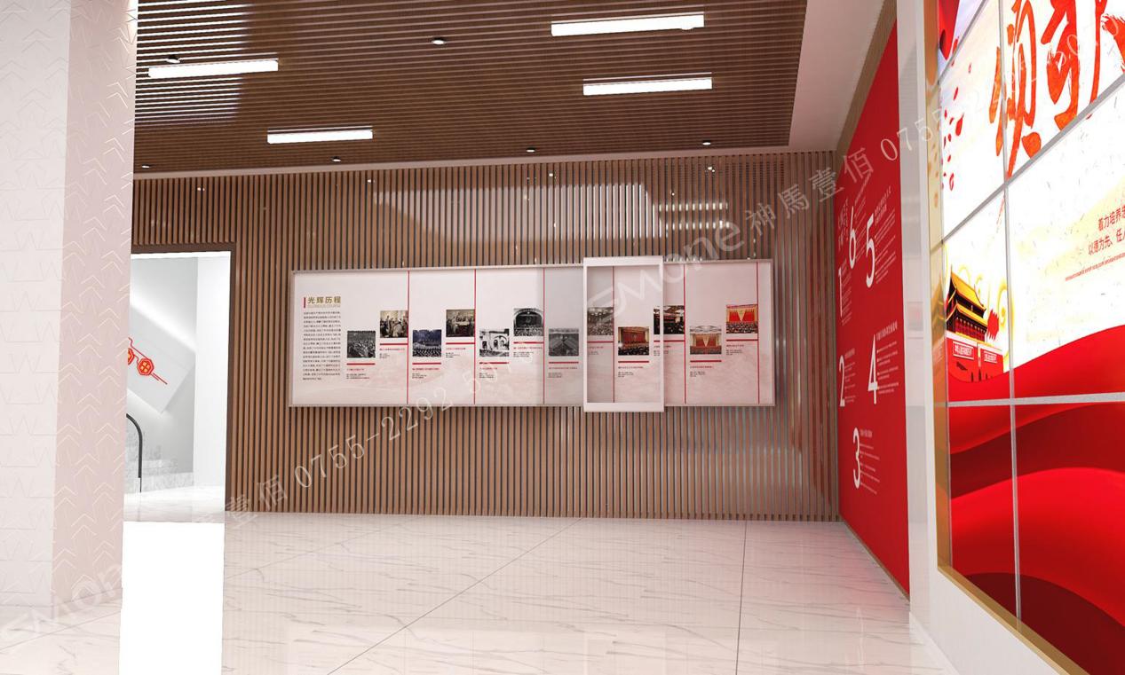 互動(dòng)滑軌屏回顧過(guò)去黨的100年光輝歷程,在這里展示了中國(guó)共產(chǎn)黨從一大到十九大的光輝歷程。