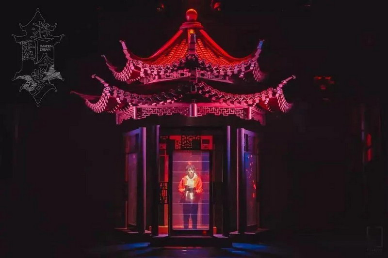 區(qū)別于傳統(tǒng)的劇場和觀演方式,《游園今夢》采用行進(jìn)式觀演模式,夢幻迷醉的裸眼3D、激光矩陣、全息境像,融合時(shí)尚浪漫的音樂,似夢似真,如癡如夢,集游園體驗(yàn)與沉浸交互表演相結(jié)合的演出形式。