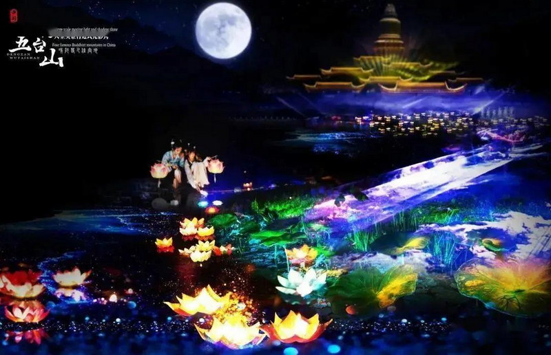 五臺(tái)山“空間光影秀”旖旎炫彩的燈光點(diǎn)亮了五臺(tái)山景區(qū)中心的夜空輪廓線,彌補(bǔ)了五臺(tái)山?jīng)]有大型空間實(shí)景光影秀的空白,同時(shí)讓世界上唯一一座世界文化遺產(chǎn)佛教圣山五臺(tái)山成為了中國佛教實(shí)景文化藝術(shù)光影演出新地標(biāo)。