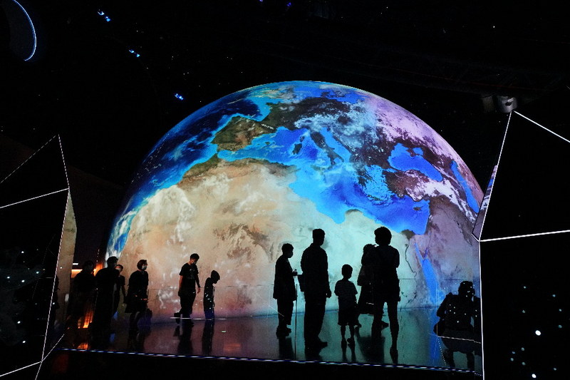 來到“家園”展區(qū), “地球變遷”展項格外引人矚目。這是由七臺科視Christie D20WU-HS 激光投影機在直徑 20 米的巨型旋轉球體上呈現(xiàn)出令人嘆為觀止的圖像。另外,“星際穿越”是一幅長達60米的巨型幕墻,10 臺科視Christie DWU1075-GS 激光投影機投射出引人入勝的互動投影。D20WU-HS 和 DWU1075-GS 的亮度分別為 20,600 和 10,875 流明,都配備了科視Christie BoldColor 技術,可精準地平衡色彩并還原繽紛的圖像,同時不影響亮度。在其它展館中,三臺科視Christie 4K7-HS 激光投影機帶來了超精細的 4K 天體圖像,它們擁有 4K 超高清分辨率,以