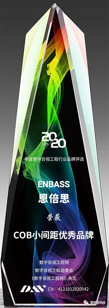 近日,由數(shù)字音視工程網(wǎng)、數(shù)字音視工程組委會、《數(shù)字音視工程》雜志主辦的“2020年度COB小間距優(yōu)秀品牌” 評選活動,正式揭曉獲獎名單。恩倍思科技榮獲“COB小間距優(yōu)秀品牌 ”獎。