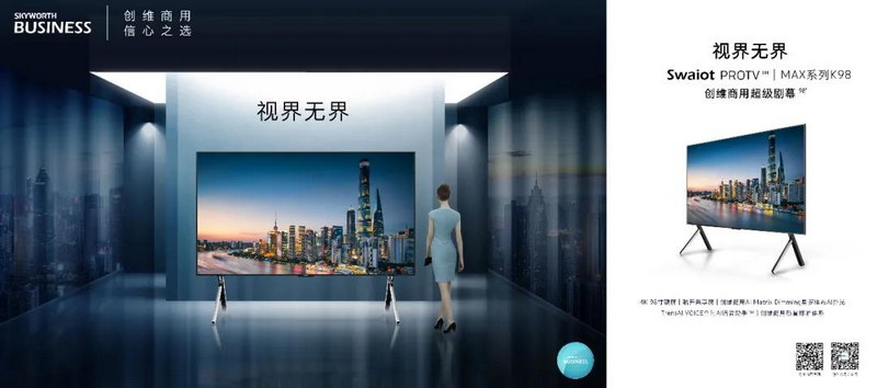 根據中國電子視像協(xié)會數據顯示,我國彩電尺寸平均每年增大1.7英寸。可以看出,除技術創(chuàng)新之外,大尺寸也成為顯示行業(yè)新一輪產品結構升級的關鍵所在。市面上的大尺寸電視不在少數,但以商用場景為主導的卻并不常見。作為擁有大尺寸資源和彩電生產條件的廠商,創(chuàng)維商用深入洞察,推出Swaiot PROTV™|MAX系列K98以4K 98吋超清顯示搭配絕美的畫質和智慧系統(tǒng),為商用領域帶來“視界無界”的極致體驗。