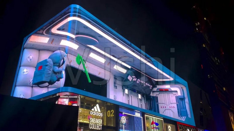 這有別于以往平面視頻的制作流程,更多要考慮曲面、尤其是90°曲面在特定視角(如斜側45°+仰視)所展現(xiàn)出來的三維透視感。