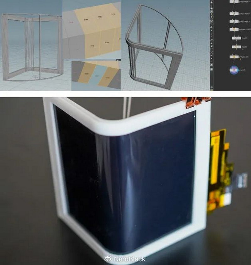 基于曲面渲染與上屏測試(使用的是柔宇1代手機,這個環(huán)節(jié)是在3D打印支架還沒有完成的過程中進行的,大概是第二版到第三版3D打印之間的那段時間,因為手機算是有一定的支撐結構能力)