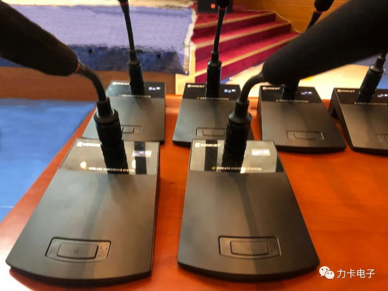 我司人員經(jīng)過與客戶深入溝通交流之后,客戶最終選擇了力卡WDC-903 Dante數(shù)字無線會議討論系統(tǒng),1臺WDC-903無線會議中央控制主機搭配1支WDC-903C無線主席代表、7支WDC-903D無線代表單元和6支TSG-910鵝頸式專業(yè)會議話筒,為會議人員帶來了清晰的聲音,保證了會議活動的順利進行。