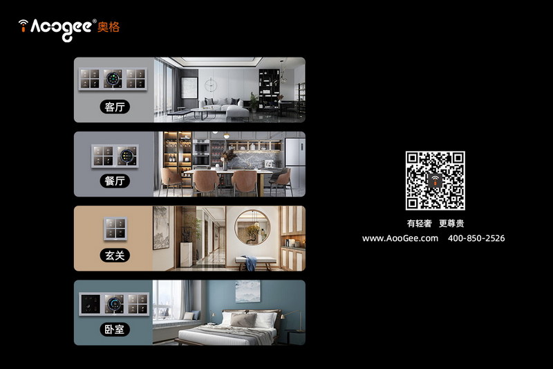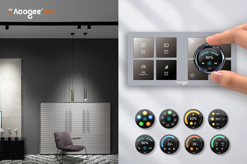 AooGee奧格璽印國風(fēng)X系列色系選用當(dāng)下裝飾流行百搭色-星空灰,連框設(shè)計滿足不同空間“1+2+3”組合式搭配,方程式連體無縫拼接;墻上的方圓之道,將文化智慧糅合機械美學(xué),是一個蘊含東方人處世哲學(xué)的智能面板,在舉手投足間便展示出了富有修養(yǎng)的獨特氣質(zhì)。