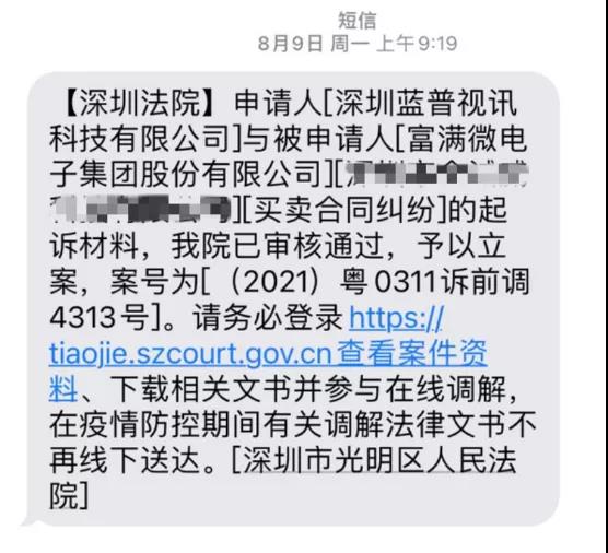 藍(lán)普視訊訴富滿電子買賣合同糾紛案已由人民法院受理,藍(lán)普視訊2021年8月9日收到正式立案通知,兩案索賠合計5278.26萬元。