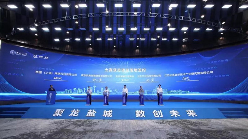 現(xiàn)場(chǎng),鹽城市與東南大學(xué)簽訂《東南大學(xué)支持鹽城市人民政府建設(shè)西伏河(數(shù)字經(jīng)濟(jì))實(shí)驗(yàn)室合作備忘錄》;為數(shù)字經(jīng)濟(jì)優(yōu)秀項(xiàng)目頒獎(jiǎng),發(fā)現(xiàn)東大獨(dú)角獸數(shù)字經(jīng)濟(jì)大賽經(jīng)過(guò)5個(gè)多月的項(xiàng)目征集、初賽、復(fù)賽、決賽、孵化等過(guò)程,從300多家東大全球校友企業(yè)中層層選拔,最終8個(gè)具有高成長(zhǎng)價(jià)值項(xiàng)目榮獲“潛力之星”稱號(hào);舉行了東大數(shù)字經(jīng)濟(jì)項(xiàng)目簽約儀式,一批數(shù)字項(xiàng)目簽約落戶鹽南高新區(qū);東南大學(xué)胡漢輝教授介紹大賽情況、耿新教授作數(shù)字經(jīng)濟(jì)主題分享。區(qū)黨工委書記、管委會(huì)主任高尚德出席,區(qū)黨工委副書記、管委會(huì)副主任唐高明,區(qū)領(lǐng)導(dǎo)周志成參加。