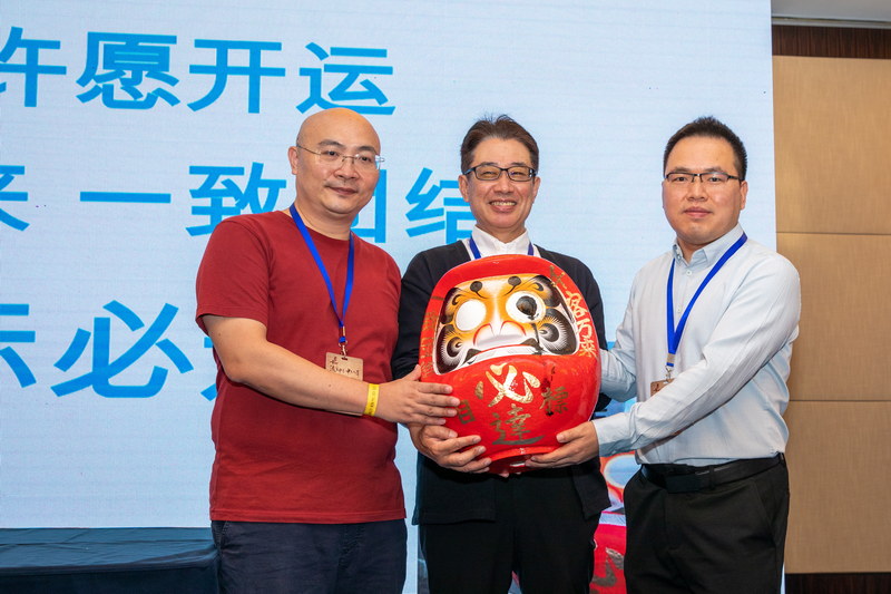 隨后,JVC建伍中國公司總經(jīng)理宮木正次先生、經(jīng)銷商代表上海麗景黃總和瑪田研通陳總舉辦了“達(dá)摩點(diǎn)睛儀式”,共同許愿銷售目標(biāo)必達(dá)。