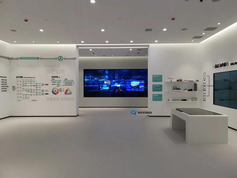 企業(yè)展廳墻面采用利華益產(chǎn)業(yè)的管道元素,用藝術(shù)展墻+實(shí)物模型+互動(dòng)識(shí)別桌裝置的形式,來展現(xiàn)利華益石化產(chǎn)業(yè)的三條長(zhǎng)產(chǎn)業(yè)鏈條,實(shí)現(xiàn)信息、技術(shù)、管理三者的融合。數(shù)據(jù)拼接屏既滿足智慧企業(yè)發(fā)展成就的展示,結(jié)合互動(dòng)操作臺(tái),展現(xiàn)了利華益集團(tuán)的科技實(shí)力。