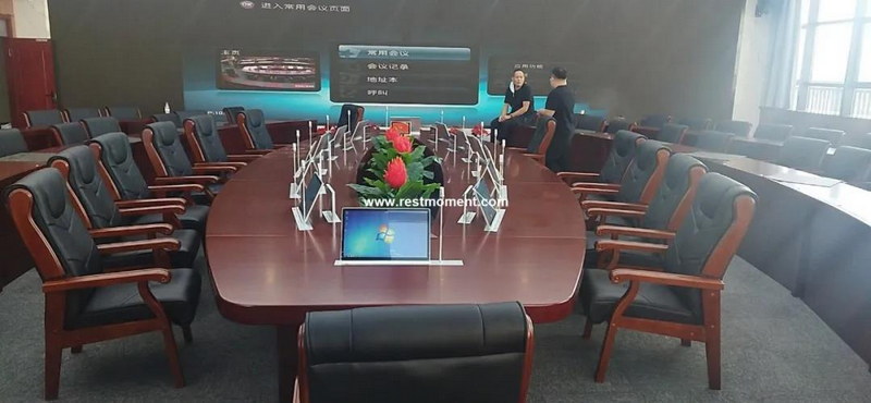 雷蒙電子根據(jù)客戶的實際需求,為新疆省某局會議室設(shè)計了一個以17.3寸無紙化會議系統(tǒng)RX-D6101/HP系列、雙屏10.1寸升降電子桌牌顯示系統(tǒng)RX-D2221/H系列、2.4G數(shù)字無線會議系統(tǒng)RX-2861系列和高品質(zhì)超遠拾音高端電容話筒RX-D08系列為核心設(shè)備的會議系統(tǒng)整體解決方案。