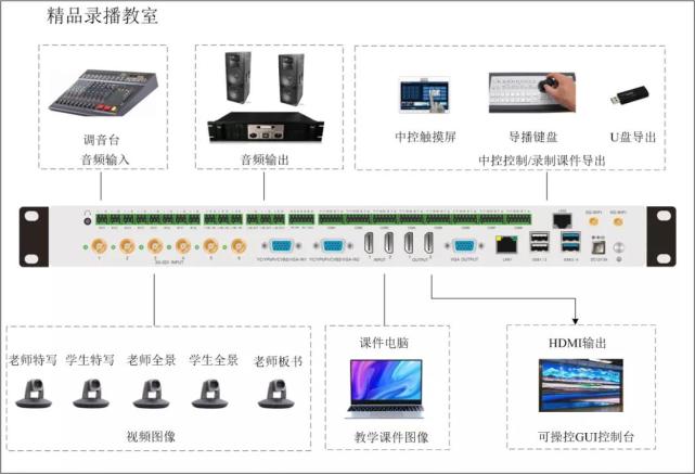 項(xiàng)目使用一臺(tái)視通科技教育專用錄播主機(jī),全方位的跟蹤攝像頭、全方位多通道錄制及直播,全程可自動(dòng)化或手動(dòng)來回控制切換,實(shí)現(xiàn)錄播教室自動(dòng)化、信息化等需求。