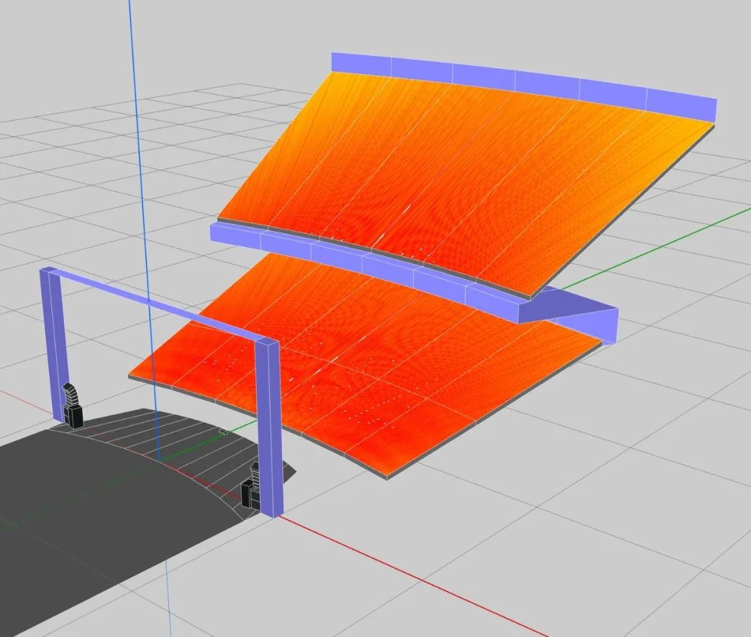 音頻系統(tǒng)從入場、安裝、調試、排練到正式演出的時間十分緊張,這時Soundvision 3D聲場模擬軟件就能發(fā)揮巨大的作用。可以在現(xiàn)場進行快速建模,特別適用于流動演出活動。其3D模擬效果可以全面預測整個場地的聲場效果,包括每個犄角旮旯。同時可以準確模擬揚聲器的偏軸響應情況,通過偏軸響應情況確定每組音箱之間的角度及距離。除此之外,Soundvision還可以查看每組揚聲器的受力情況,確保吊掛揚聲器及落地揚聲器有非常高的機械安全性能。