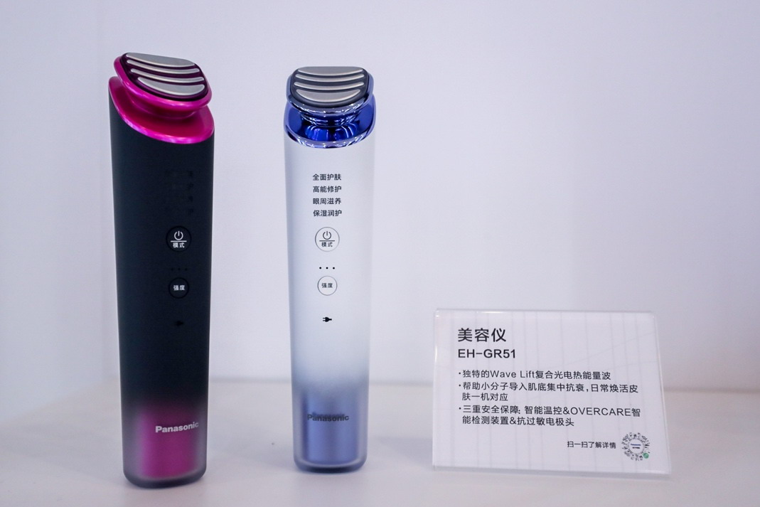 松下美容儀:松下本次展出的新品美容儀EH-GR51,具有獨特的Wave Lift復(fù)合光電熱能量波,幫助小分子導(dǎo)入肌底集中抗衰。同時具備智能溫控、OVERCARE智能檢測裝置及抗過敏電極頭三重安全保障,讓消費者使用安心、悉心變美。