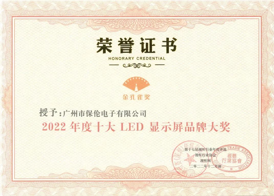2022年度十大LED顯示屏品牌大獎(jiǎng)