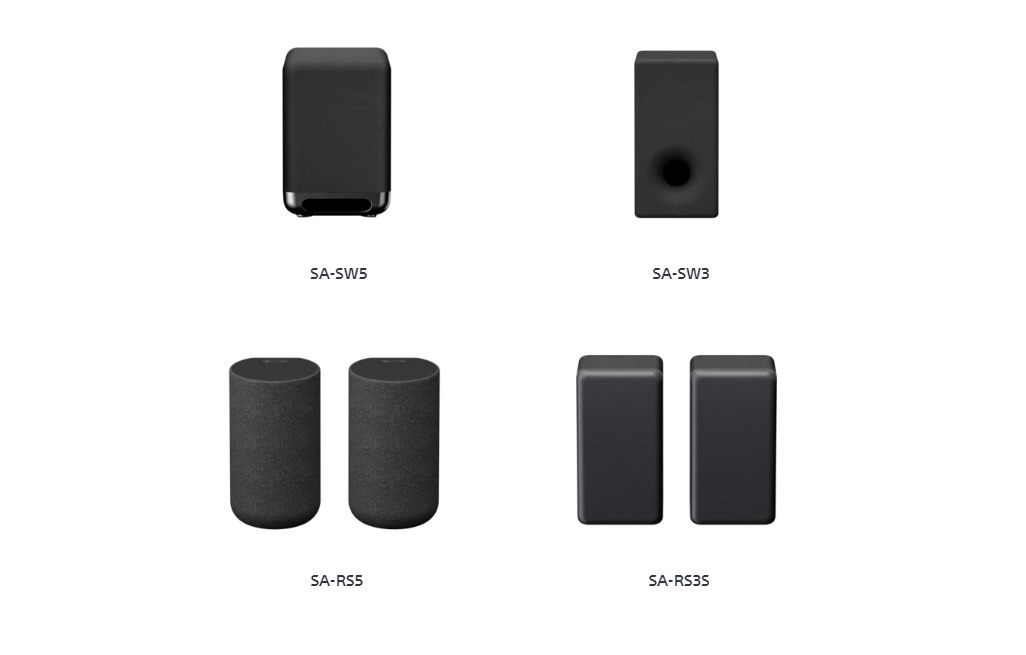 從左至右:HT-A5000+SW3+RS3S低音環(huán)繞套裝,HT-A3000+SW3+RS3S低音環(huán)繞套裝