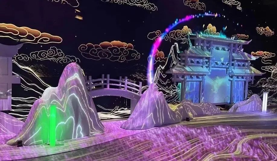 展項(xiàng)從技術(shù)應(yīng)用帶來(lái)了裸眼3D、全息、人機(jī)交互、智慧水幕、智慧燈光等,展項(xiàng)合理布局,投影/LED/風(fēng)扇屏幕/激光/燈光/亮化照明/水幕/音頻深度融合,給觀眾呈現(xiàn)了夜游文旅經(jīng)濟(jì)創(chuàng)新創(chuàng)造的前沿體驗(yàn)。