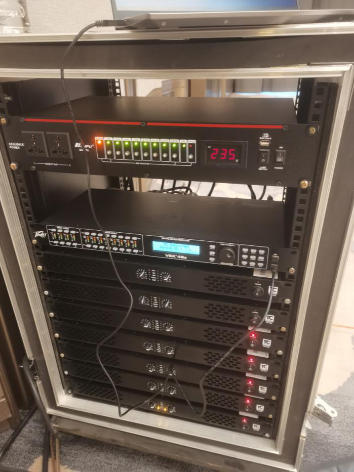 為適應(yīng)于該會議中心的展覽、會議、綜合活動等多功能用途,揚(yáng)聲器系統(tǒng)設(shè)計(jì)為流動式,18只TC-AUDIO LA210雙10線陣全頻、4只TC-AUDIO LA118S單18線陣超低,既可作為一套大型演出擴(kuò)聲系統(tǒng),亦可適用于會場拆分為多個(gè)場所的擴(kuò)聲系統(tǒng)使用。配置有4只TC-AUDIO MC112流動式舞臺返送揚(yáng)聲器、4只TC-AUDIO MC110輔助揚(yáng)聲器。搭配15臺TC-AUDIO DA系列數(shù)字功率放大器。