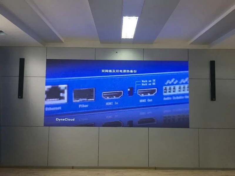 本項(xiàng)目采用DyneCloud分布式系統(tǒng),音視頻信號由前端設(shè)備DY-300T進(jìn)行編碼并通過局域網(wǎng)傳輸信號,再由后端設(shè)備DY-300R進(jìn)行解碼將畫面顯示到LED屏并且做到聲音和畫面同步。音頻采用DY-0808D音頻處理器搭配POE音柱,一根網(wǎng)線實(shí)現(xiàn)音頻和供電的傳輸,現(xiàn)場聲音清晰飽滿,滿足客戶的聲音采集和擴(kuò)聲的需求。