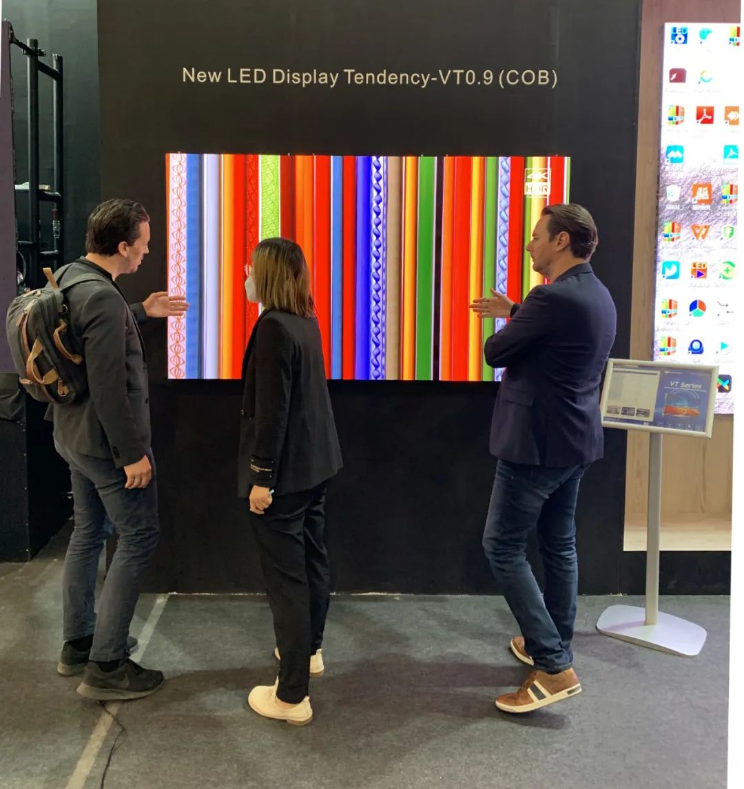 本次ISE展會聯(lián)建光電展臺上,聯(lián)建光電COB產(chǎn)品VT0.9系列以高清亮麗的畫質(zhì)吸引眾多眼球,產(chǎn)品采用聯(lián)建光電Vmini微間距顯示技術(shù),全倒裝COB封裝,擁有大于10000:1超高對比度,微米級發(fā)光芯片,可呈現(xiàn)更黑的黑場和更高的對比度,呈現(xiàn)出無與倫比的高清畫質(zhì)。聯(lián)建光電擁有成熟的COB微間距生產(chǎn)線,達(dá)到規(guī)模化量產(chǎn),目前已獲得眾多海內(nèi)外客戶訂單。