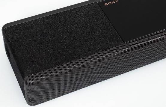 HT-A7000用到的材料包括金屬網(wǎng)罩、玻璃材質(zhì)上蓋板以及兩側(cè)天空聲道單元上的獨(dú)特織物材料。兩側(cè)頂部覆蓋選擇織物材料的原因,是為了避免天空聲道聲音向觀眾直接傳播,而正面的金屬網(wǎng)罩則能嵌入小型屏幕,使得操作更便捷直觀,頂部的玻璃材質(zhì)強(qiáng)化機(jī)身硬度,有效抑制共振。不過(guò)玻璃上蓋板在離電視比較近的情況下可能會(huì)反光,可以考慮鋪一塊布。